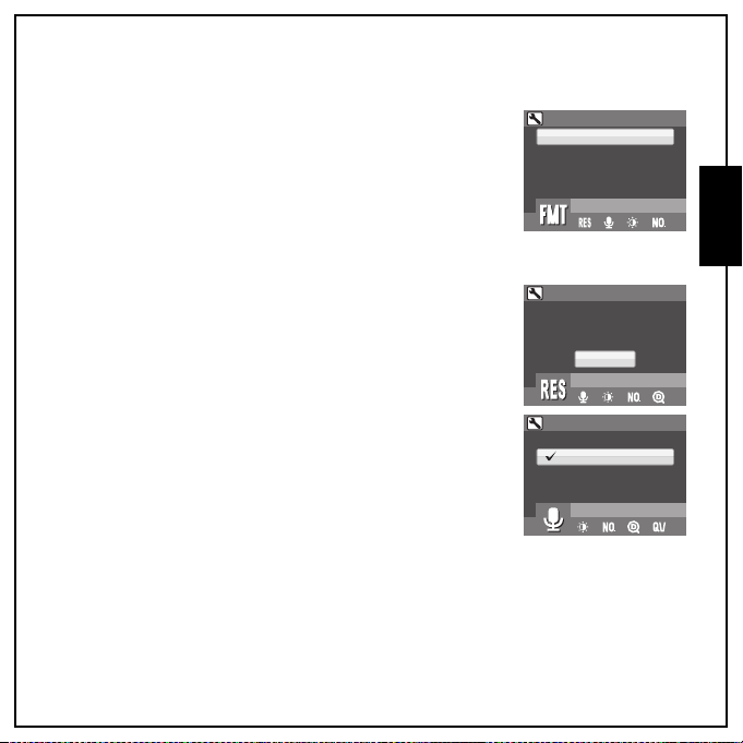 photo is taken or in playback mode. Select ON to enable the Voice Memo