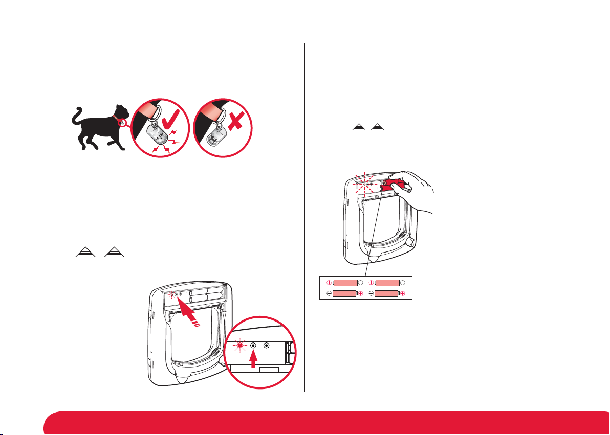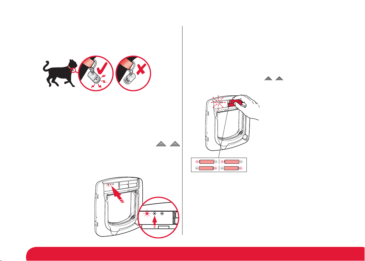 approximately 15 cm (6 inches) of range for the cat door key and 60 cm (24 inches) for the dog door key. However, the better the refl ective surfaces around your pet door, the larger the range of the collar key. Strong sunlight will affect the range of the collar key. It is strongly