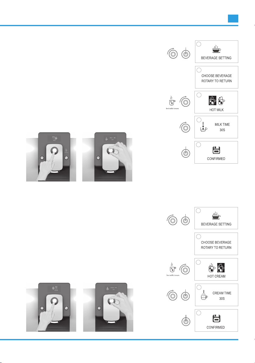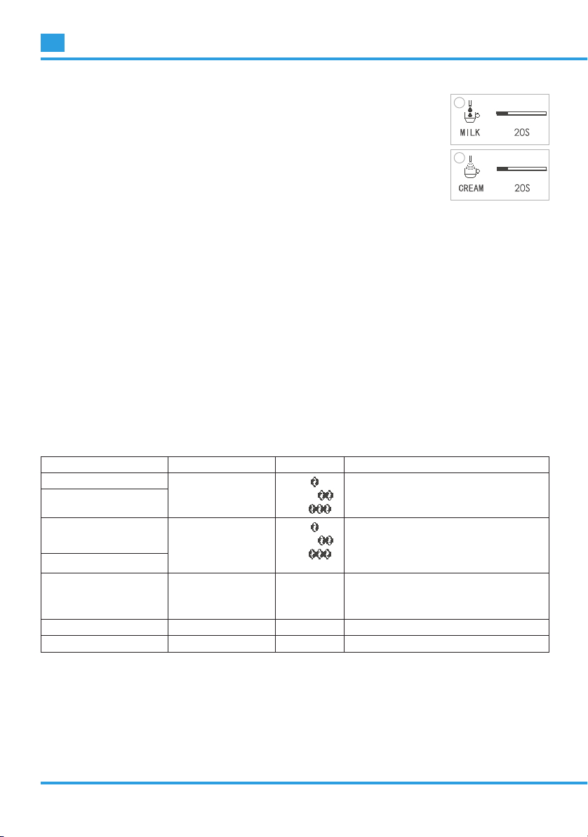 • Nastavenie dĺžky prípravy horúceho mlieka.
