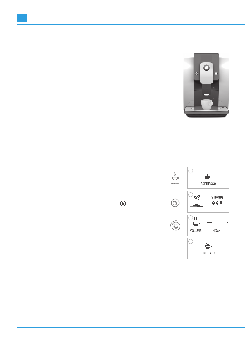 • Pomocou držadla nastavte výšku výpustu kávy podľa výšky šálky; zamedzíte tak rozstrekovaniu kávy.