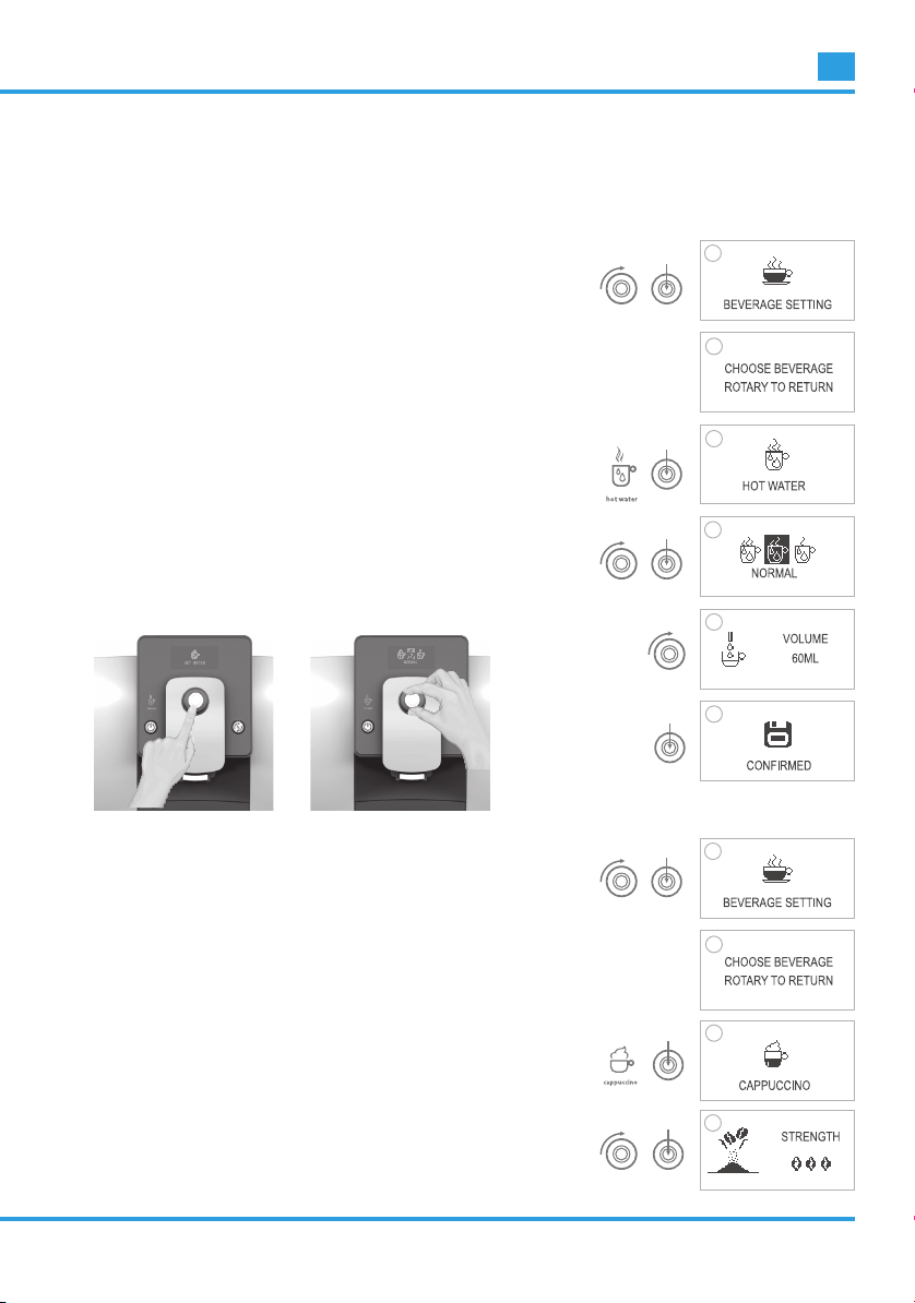 5) Pred prípravou horúcej vody je možné pomocou otočného tlačidla upraviť