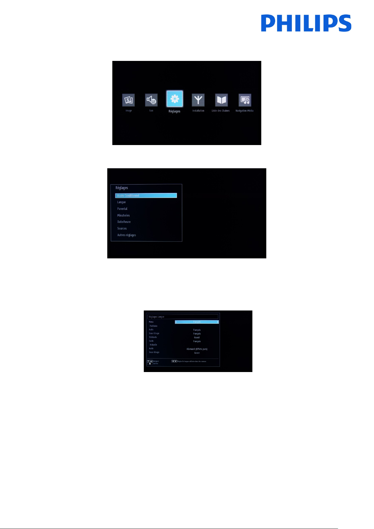 Pour naviguer dans ce menu, vous devez utiliser la télécommande client (22AV1107A).
