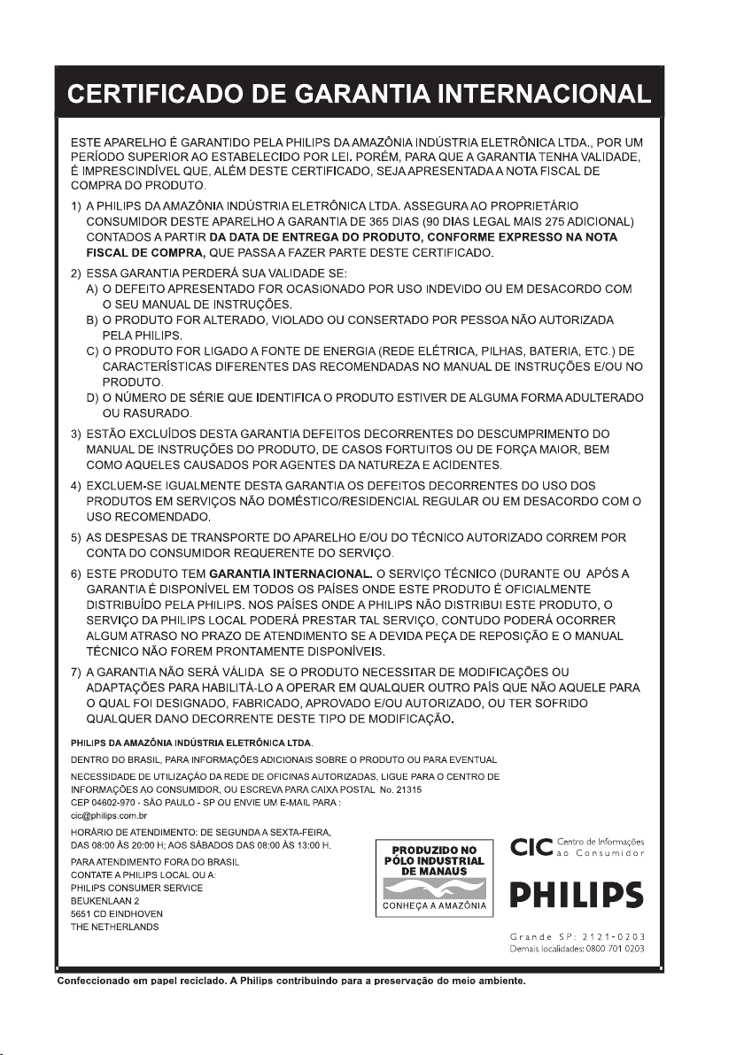 técnicos ou ofi cinas autorizadas, evitando assim a perda da garantia