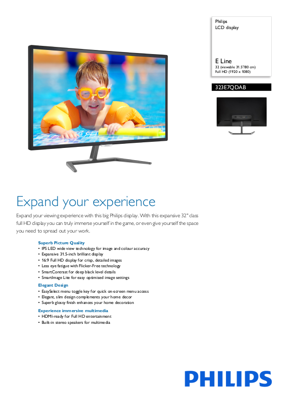 Expand your viewing experience with this big Philips display. With this expansive 32" class