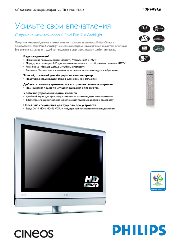 технологиями Pixel Plus 2, Ambilight и с самыми современными плазменными технологиями.