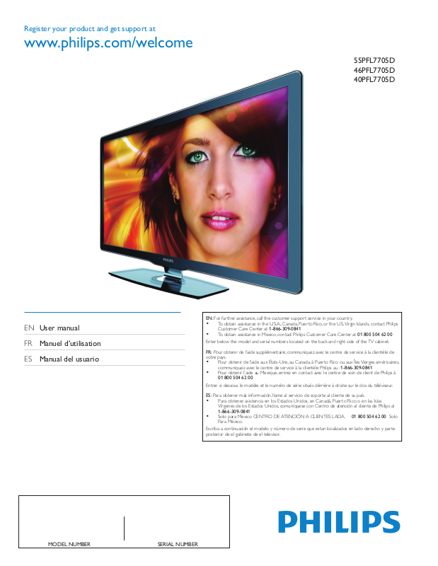• To obtain assistance in the U.S.A., Canada, Puerto Rico, or the U.S. Virgin Islands, contact Philips