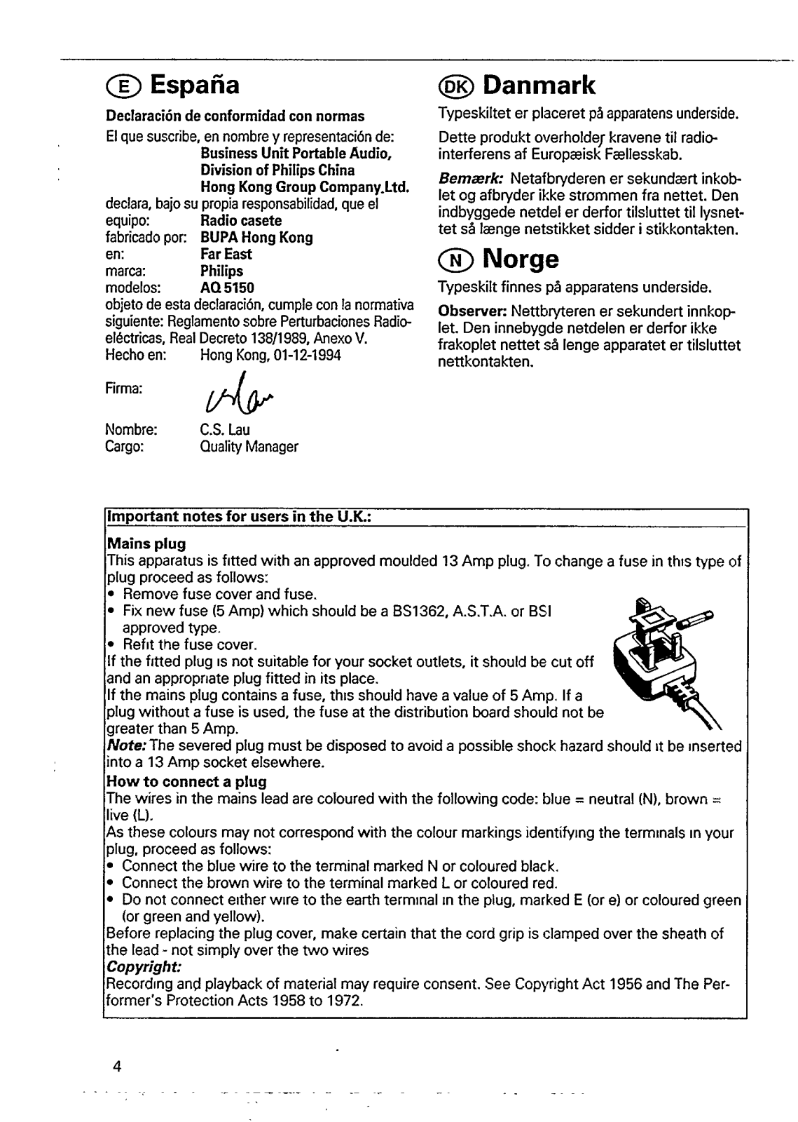 Philips AQ5150/14S, AQ5150/05S, AQ5150/04S, AQ5150/05, AQ5150/04 User Manual [da]
