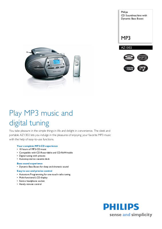 portable AZ1302 lets you indulge in the pleasures of enjoying your favorite MP3 music