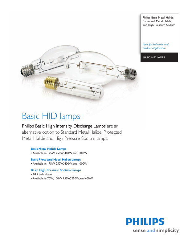 WARNINGS, CAUTIONS AND OPERATING INSTRUCTIONS for Basic Protected Metal Halide Lamps