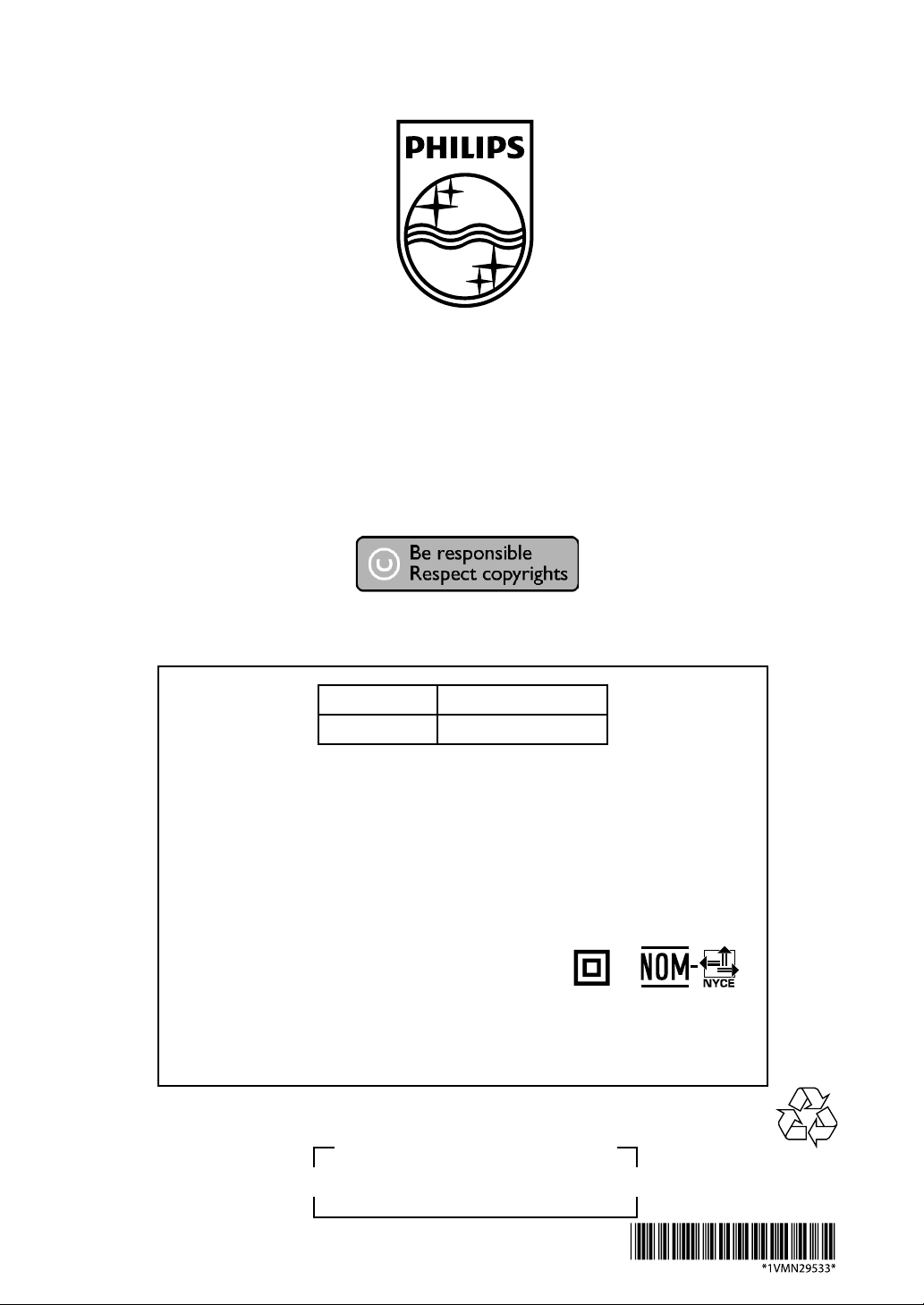•To obtain assistance in Mexico, contact Philips Customer Care Center at 01 800 504 62 00