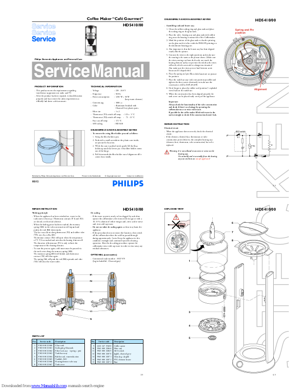 Philips Cafe Gourmet HD5410/00 Service Manual