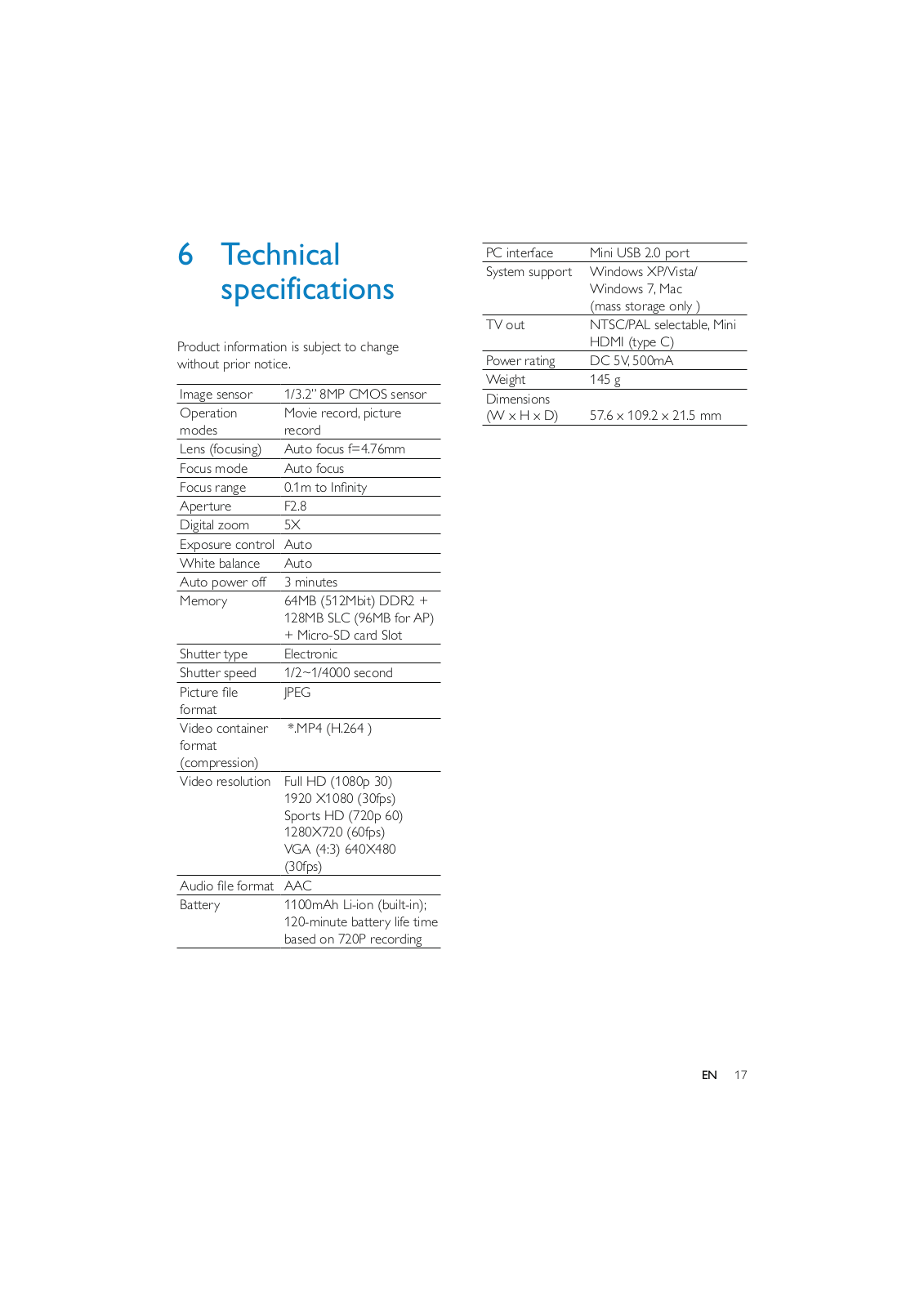 Specifications and Main Features