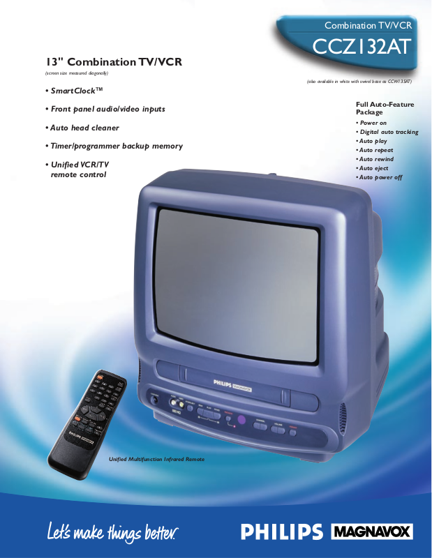 Contains: 13" Combination TV/VCR, Unified TV/VCR Remote Control w/Batteries, Monopole
