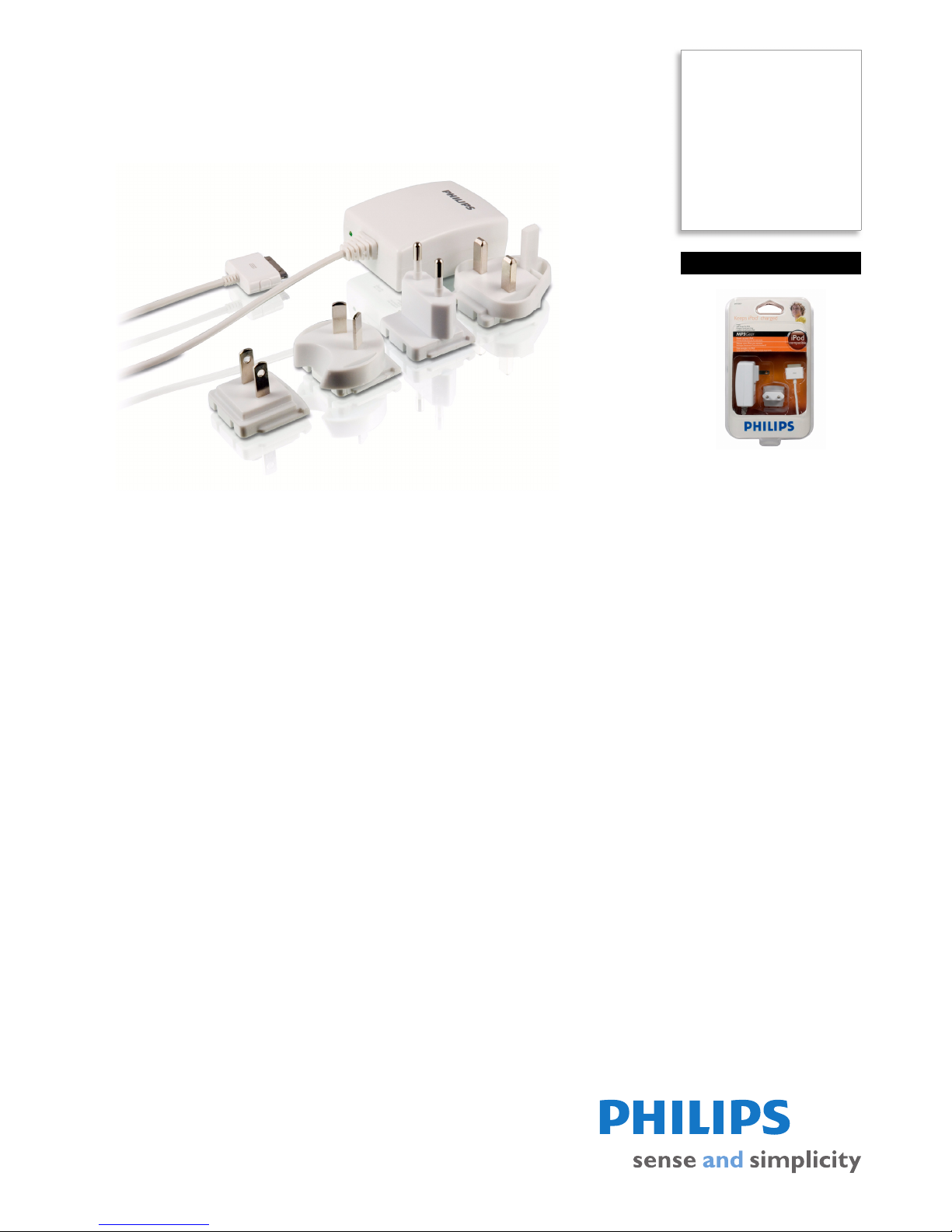 Charge your iPod directly from any AC power source. Interchangeable plug prongs
