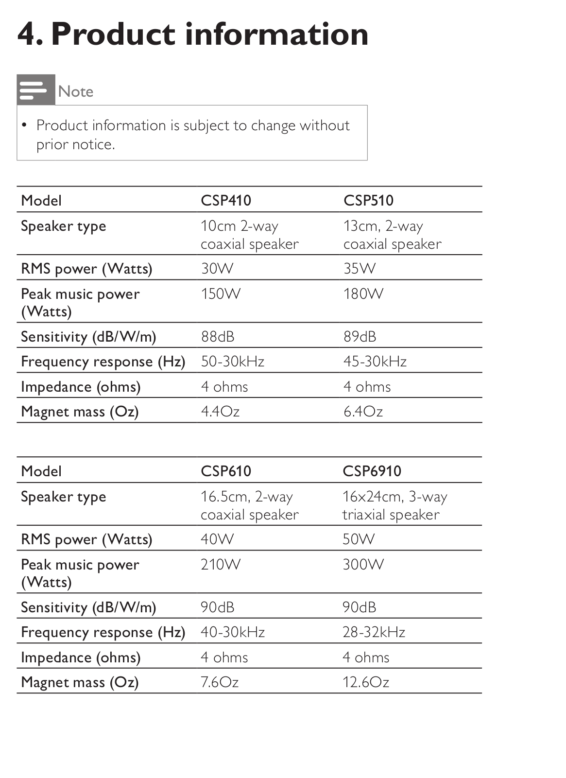 Philips CSP6910/93, CSP610/93, CSP510/93, CSP410/93, CSP410 User Manual