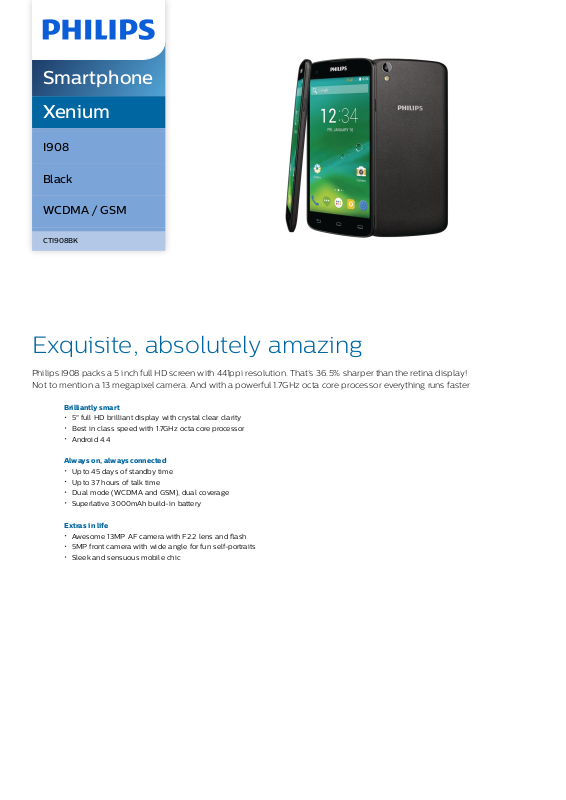 Philips I908 packs a 5 inch full HD screen with 441ppi resolution. That’s 36.5% sharper than the retina display!