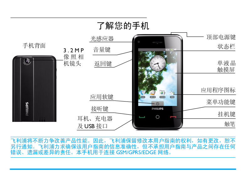 错误、遗漏或差异的责任。本手机用于连接 GSM/GPRS/EDGE 网络。