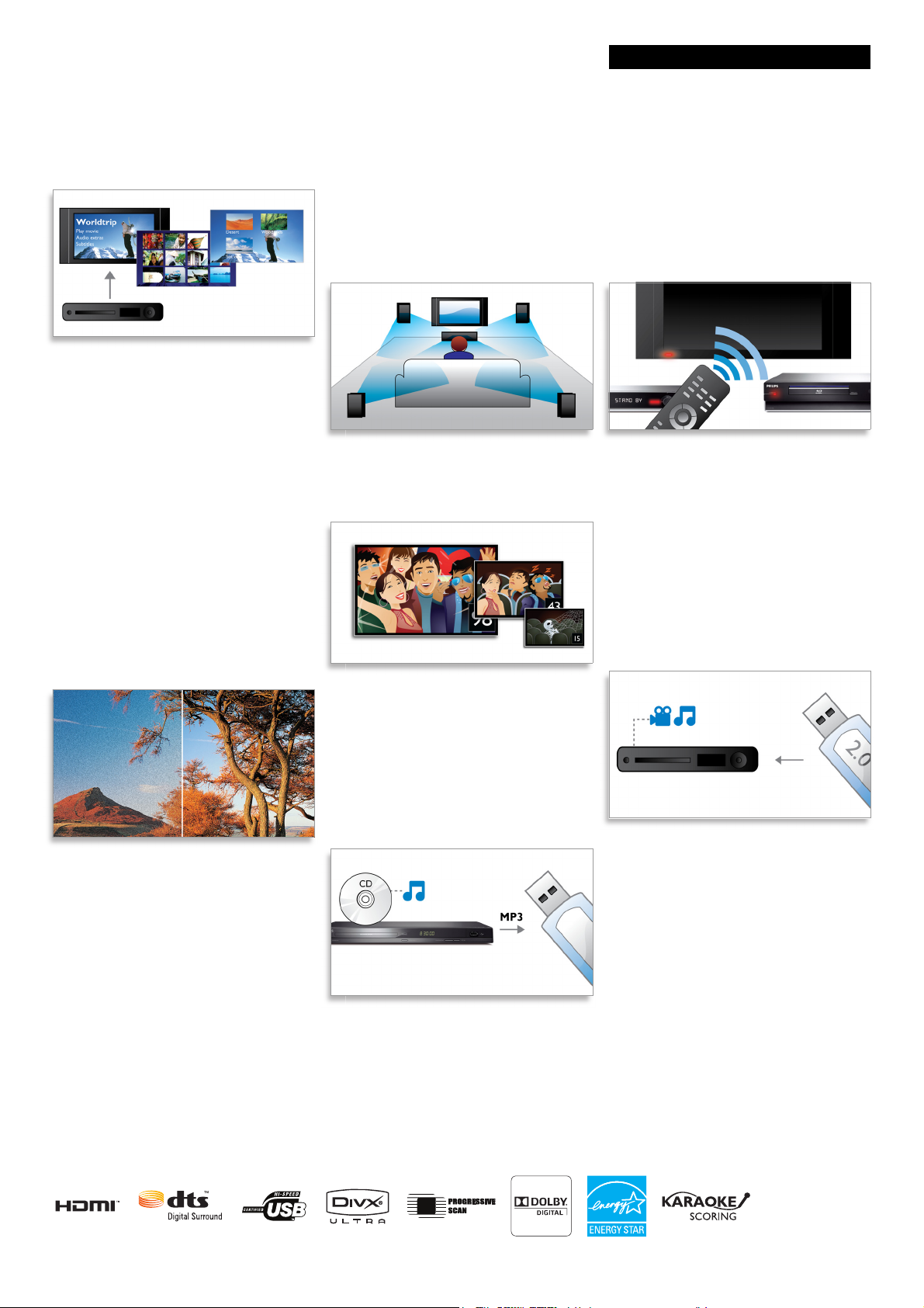 • Certifikované pre DivX Ultra na zdokonalené prehrávanie videa DivX
