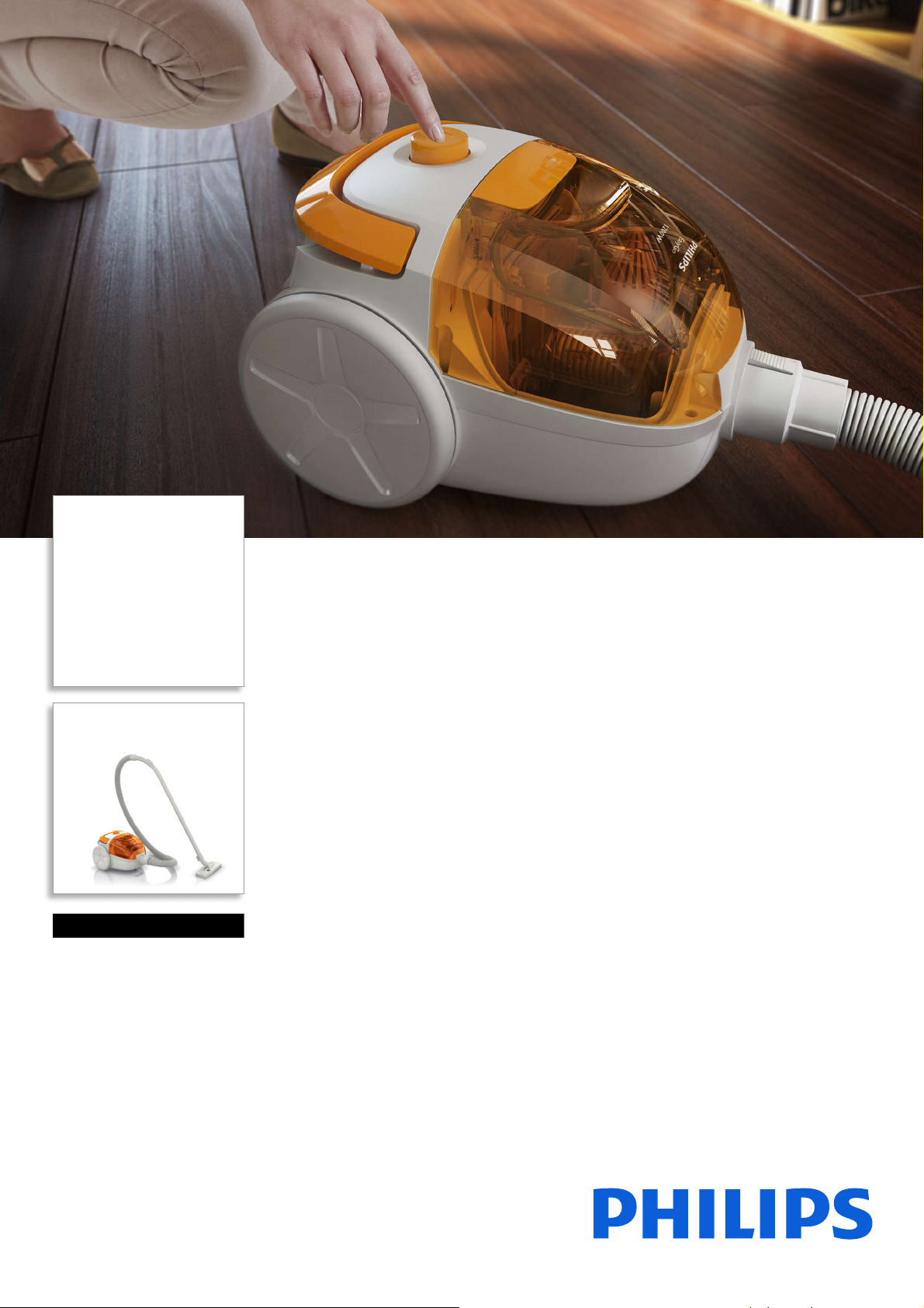 Philips kompakt elektrikli süpürge güçlü temizleme performansı sunar. Hafifliği ve küçük