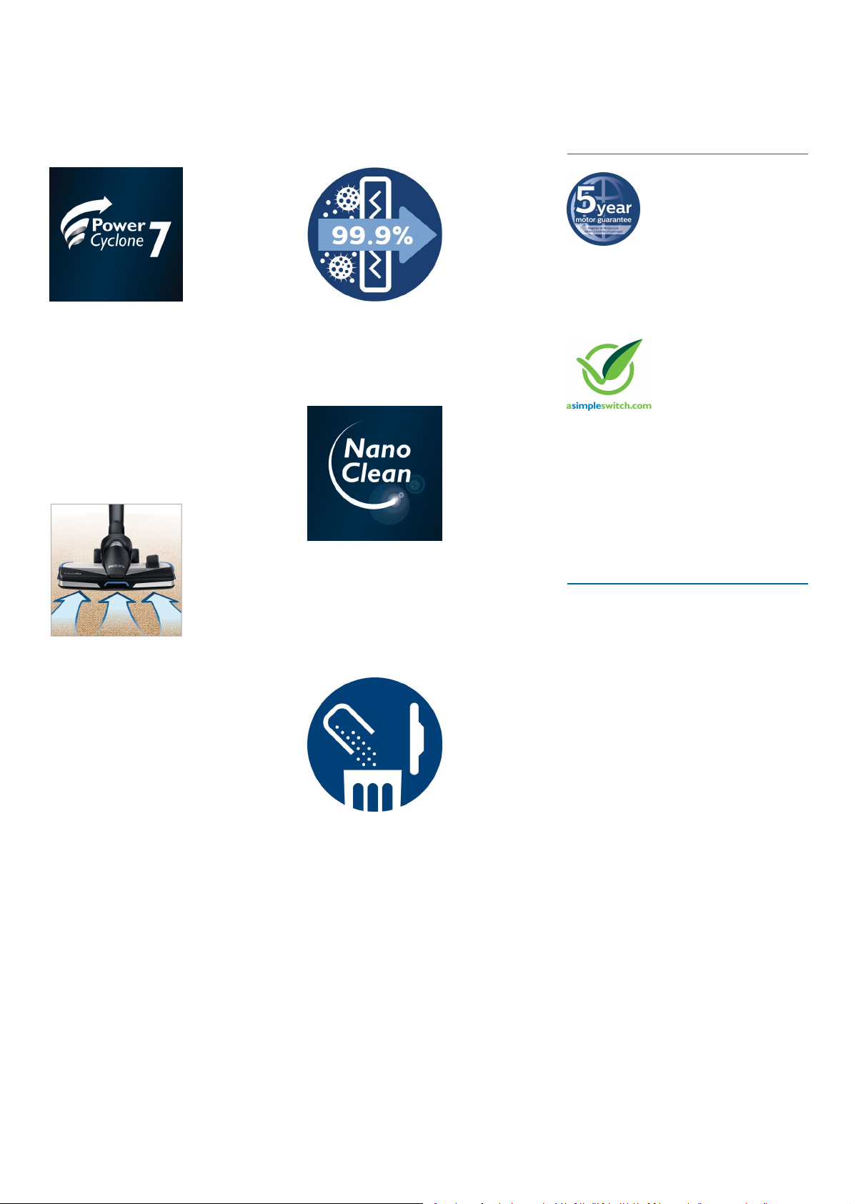 schoonmaakresultaat. PowerCyclone 7 zorgt voor een uitstekende scheiding van stof en lucht en het