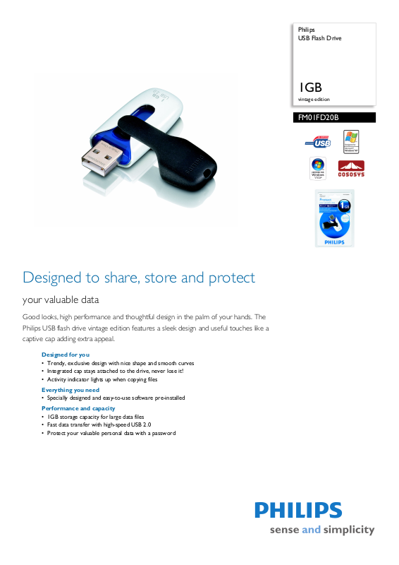 Philips USB flash drive vintage edition features a sleek design and useful touches like a