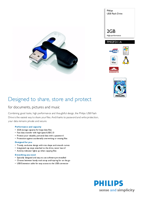 Combining good looks, high performance and thoughtful design, the Philips USB Flash