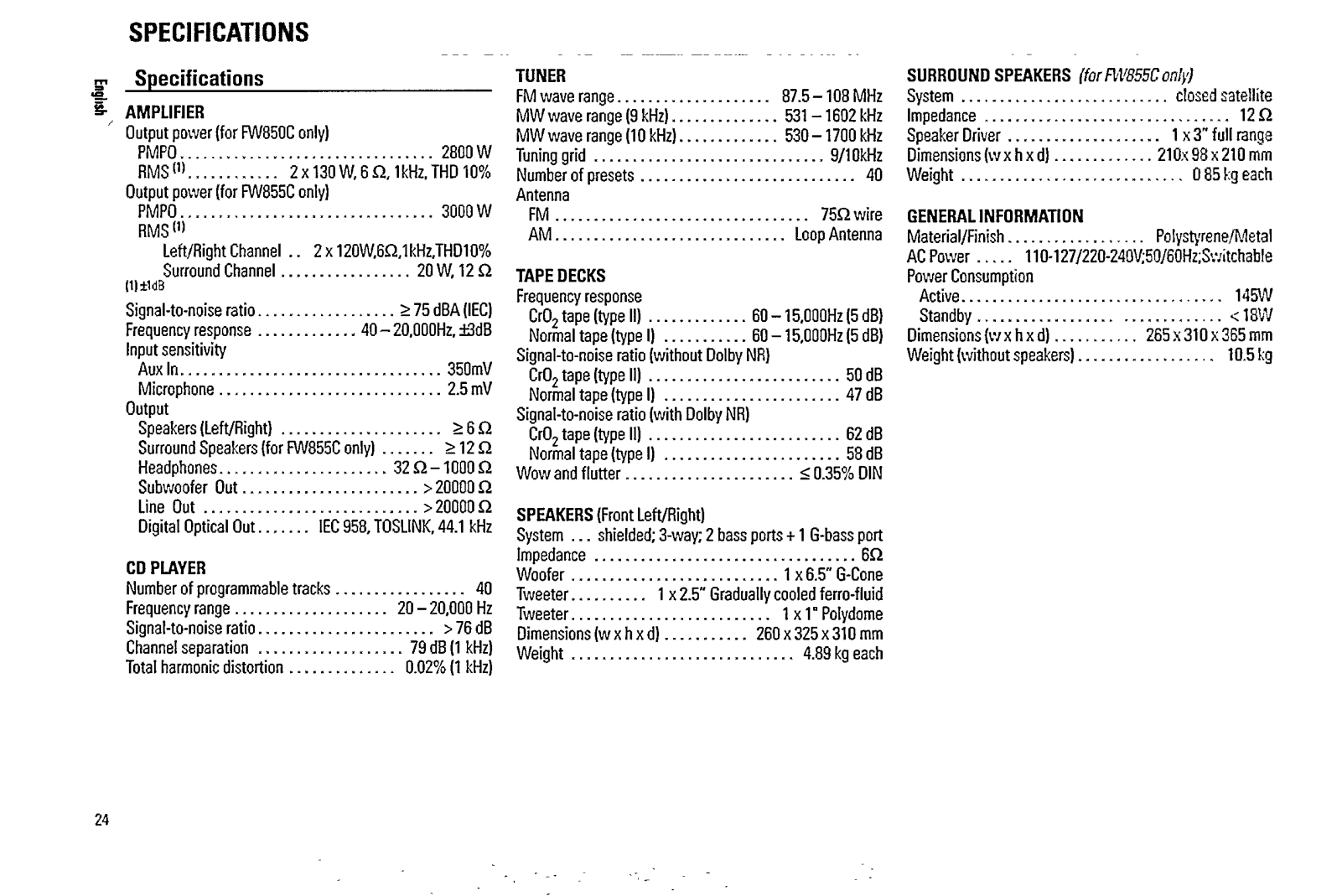 Philips FW 850C, FW855C User Manual