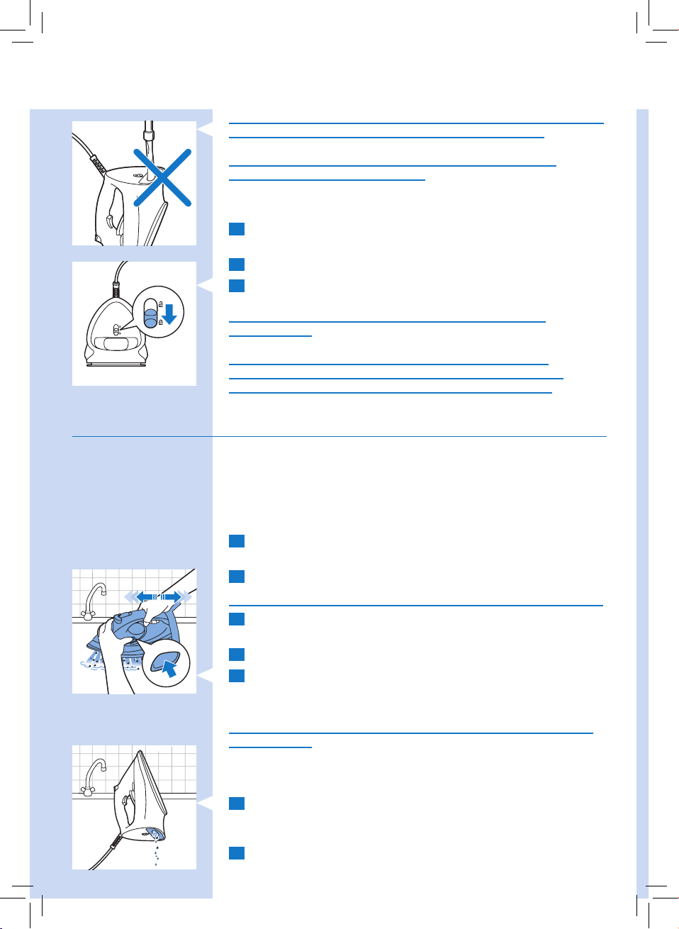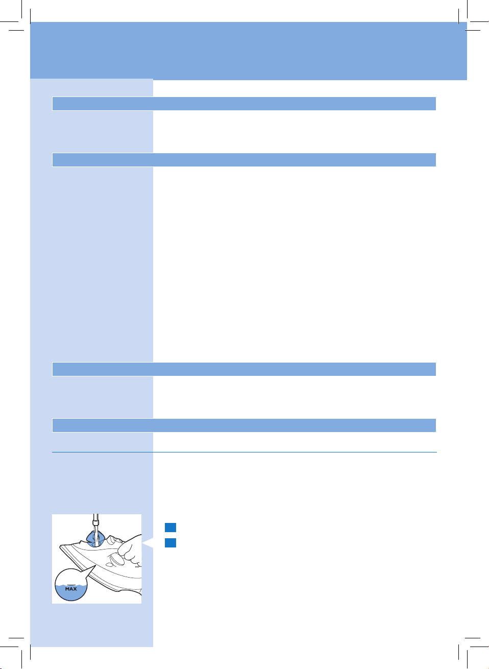 2 Tilt the iron backwards and ll the water tank with tap water up to