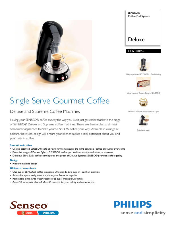 • Delicious SENSEO® coffee foam layer as the proof of Douwe Egberts SENSEO® premium coffee quality
