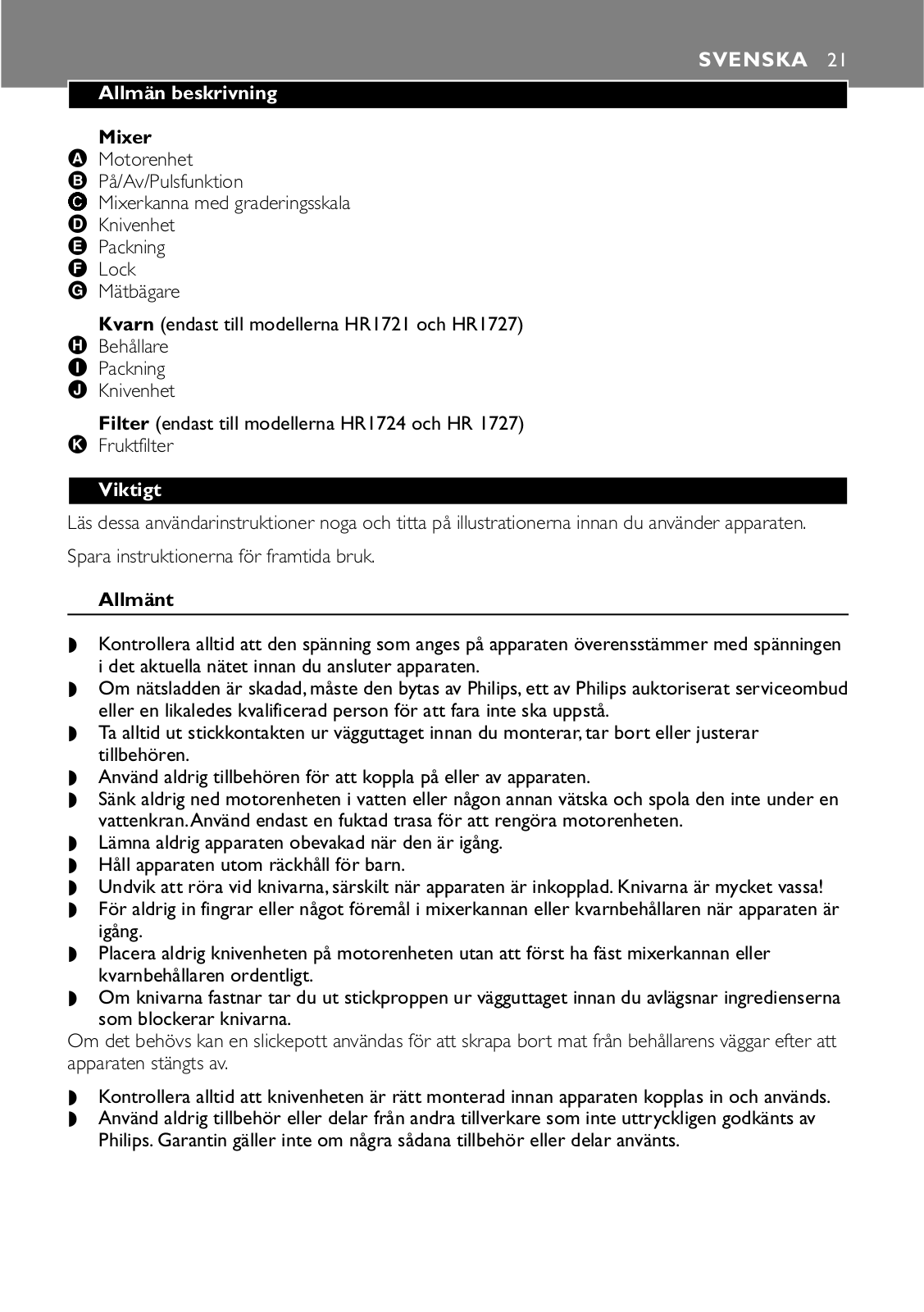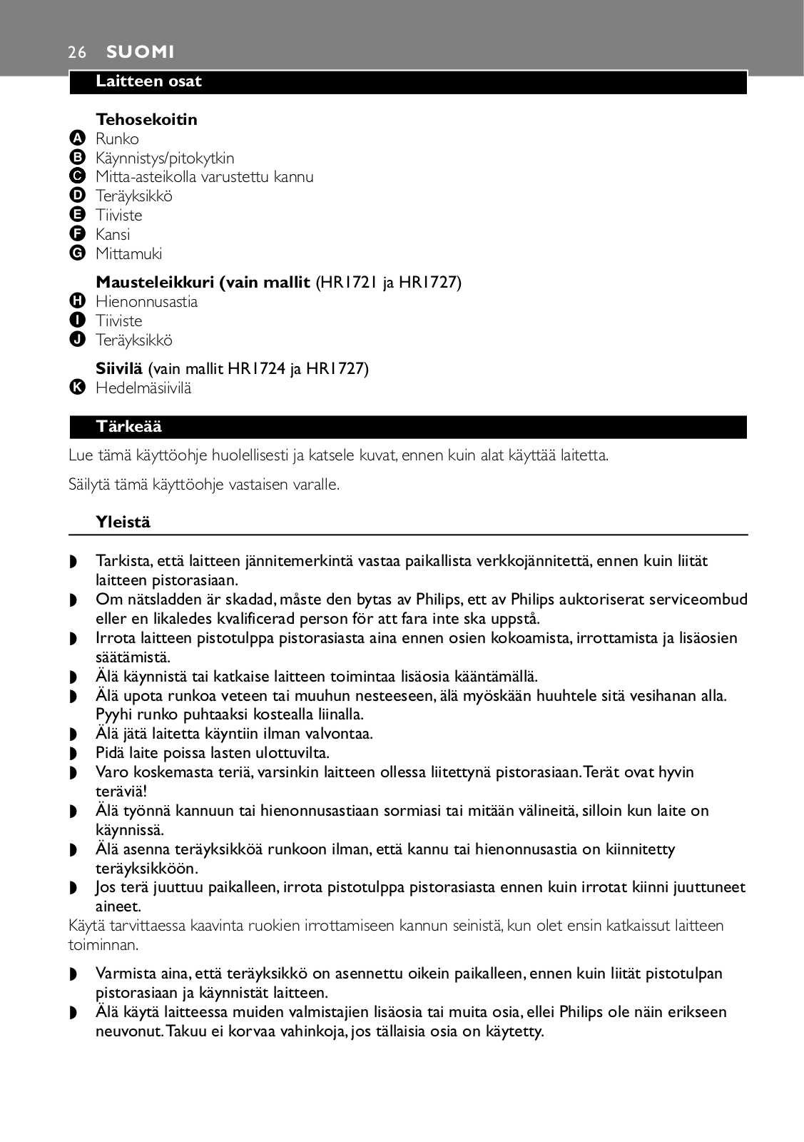 Philips HR1727/16, HR1727/06, HR1724/06, HR1721/06, HR1720/16 User Manual [fi]