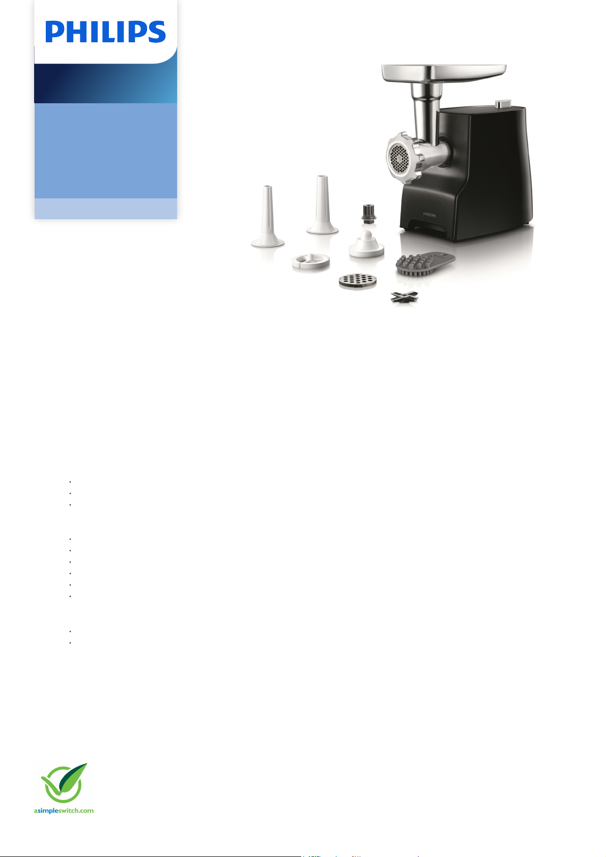 Высокопроизводительная мясорубка Philips оснащена мощным двигателем, металлическим шнеком, качественным ножом и