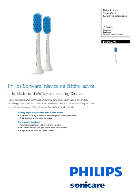 technologií. Díky speciálně vyvinutým vláknům MicroBristles čistí hlavice TongueCare+