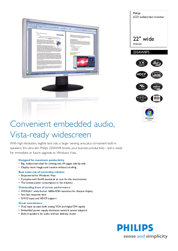 speakers, this ultra-slim Philips 220AW8 boosts your business productivity - and is ready