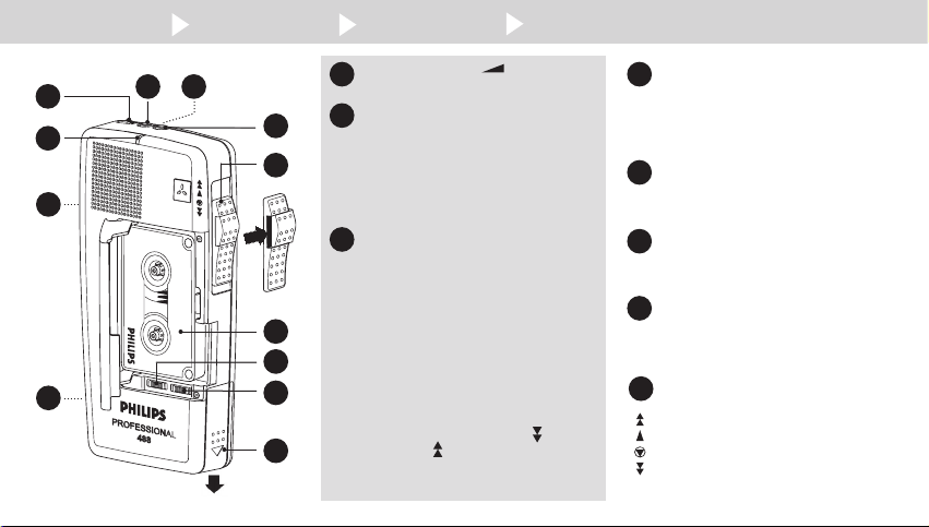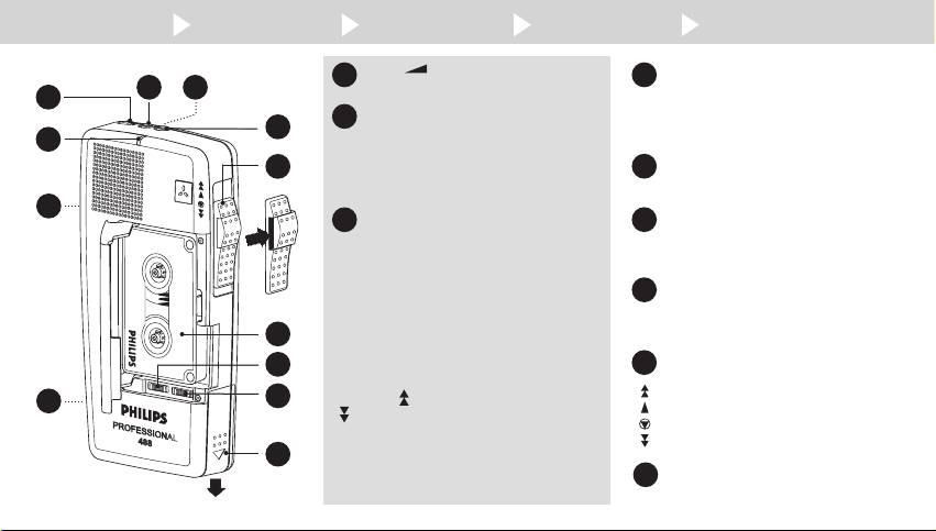L’enregistrement est sourd................................................................ Changez la cassette. Nettoyez la tête de lecture et la tête d’enregistrement de votre Pocket Memo avec les cassettes