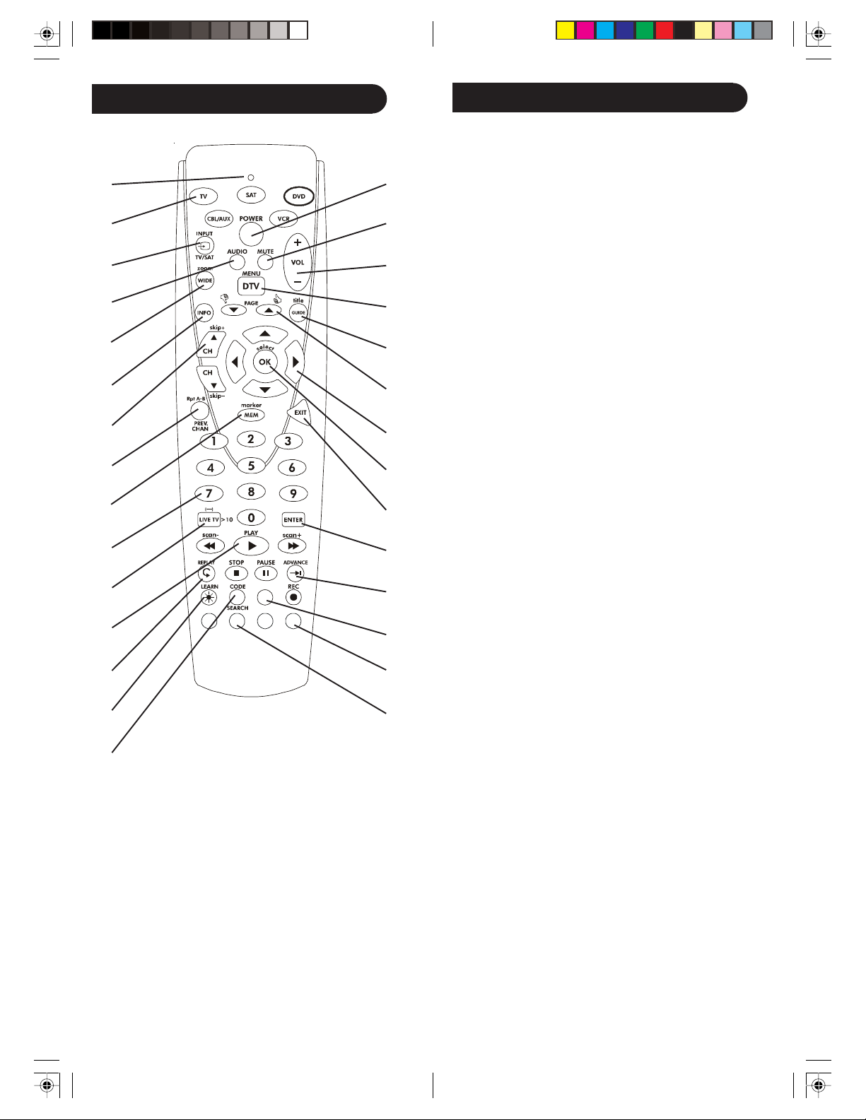 Up/Down (in DVD and SAT modes). Note the VCR buttons