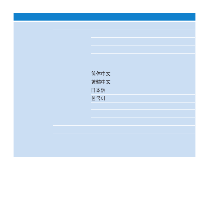Storage capacity based on 4 minutes per song and 64 kbps WMA or 128 kbps MP3