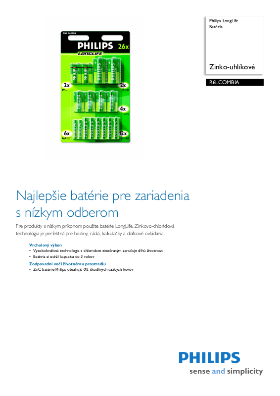 • ZnC batérie Philips obsahujú 0% škodlivých ťažkých kovov