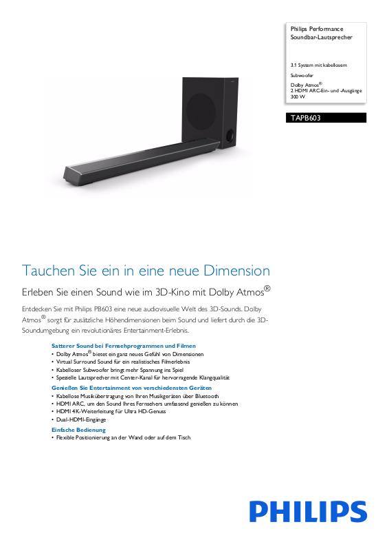 Entdecken Sie mit Philips PB603 eine neue audiovisuelle Welt des 3D-Sounds. Dolby