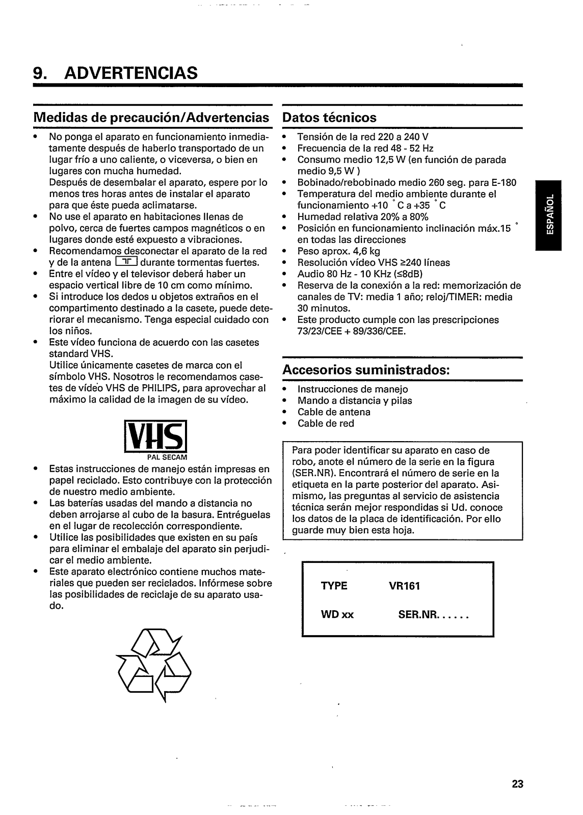 Philips VR161/08, VR161/07, VR161/05, VR161/01 User Manual [es]