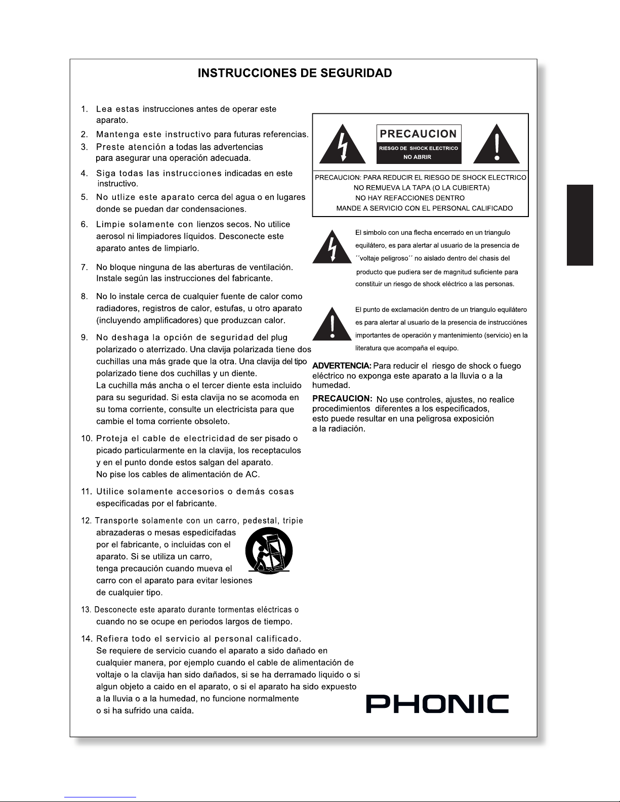 CAUTION: T O REDUCE THE RISK OF ELECTRIC SHOCK,