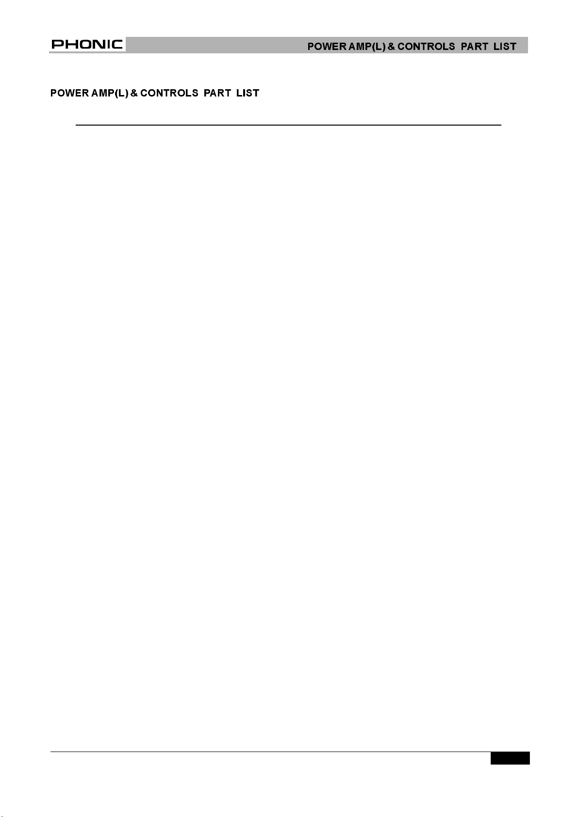POWER AMP(L) & CONTROLS PART LIST......................................................................13