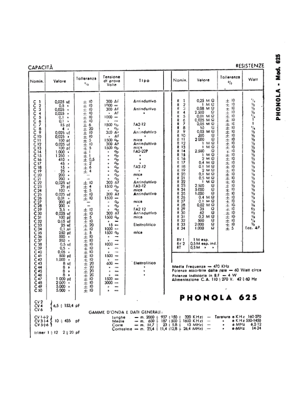 Phonola 625 components