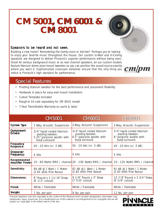 Pinnacle Speakers owns the copyrights to the content of this literature which includes photographs, descriptive copy,