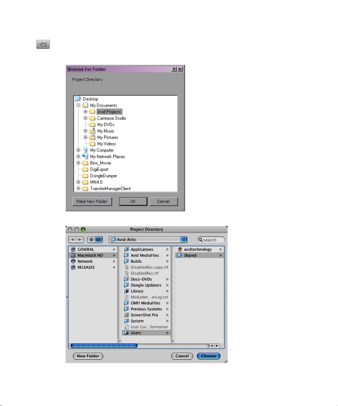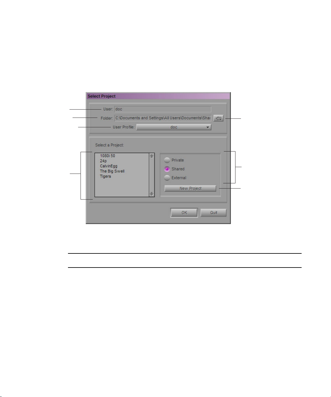 Title dialog box, the Select Files to Import dialog box, the Audio Mixdown dialog box, and