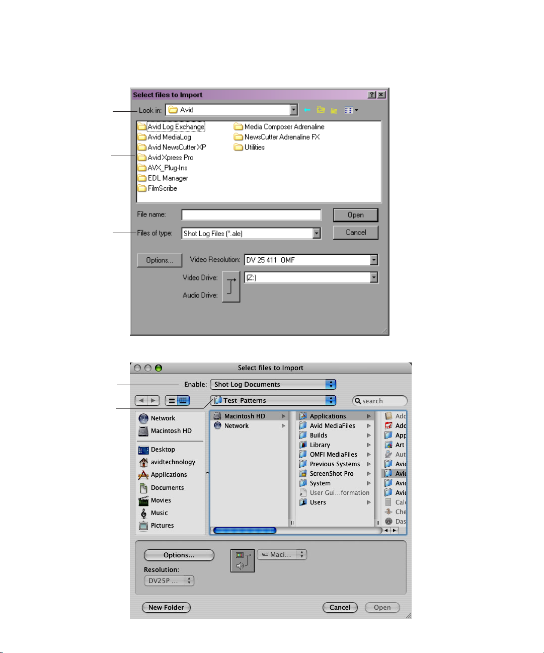 Resolutions use either the OMF or the MXF media format. For more information, see “File