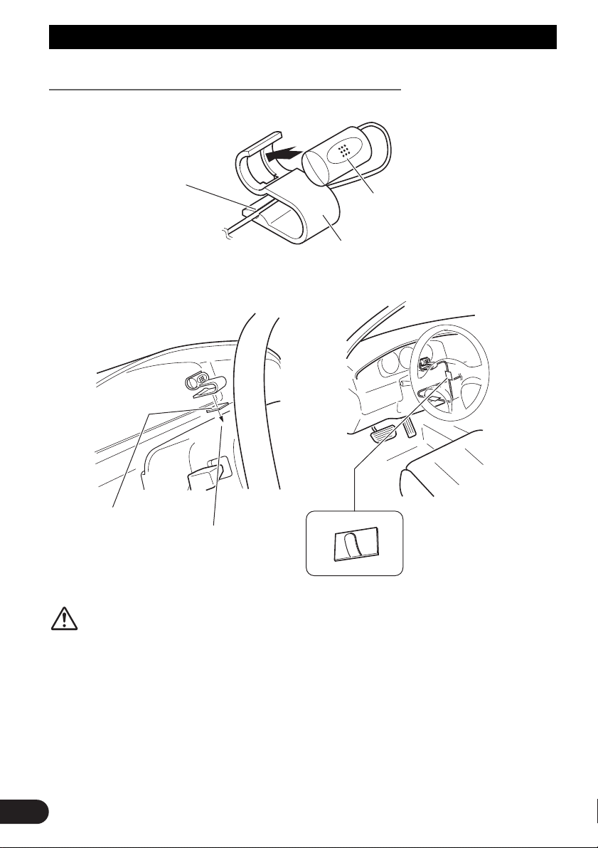 Le pare-soleil étant relevé, fixez l’attache du microphone. (Le taux de reconnaissance