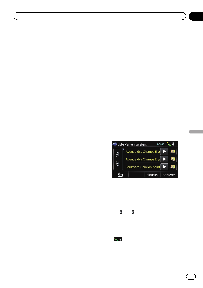 Erscheint, wenn ein TP-Sender (Verkehrsfunkinformationen ausstrahlender Sender) einge-