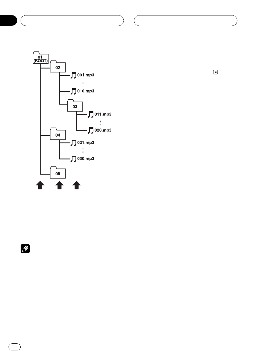 ne contiennent pas de fichiers MP3. (Ces dossiers seront sautés sans afficher le numéro de