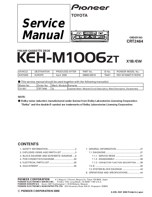 Unit Name : FM/AM Tuner Unit
