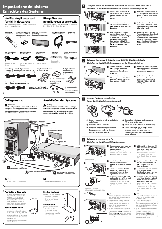 Collegare l’unità del subwoofer al sistema del sintonizzatore del DVD/CD